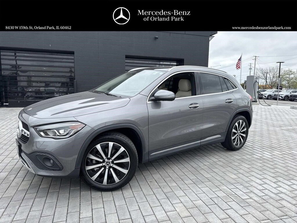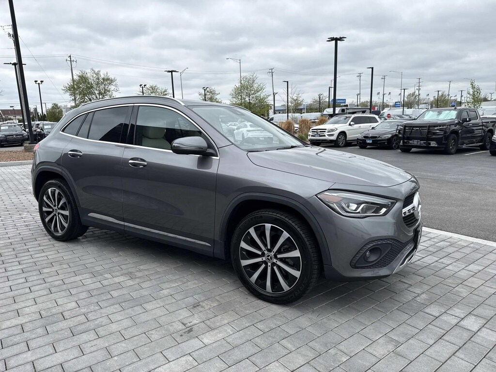 Certified. Mountain Gray Metallic 2022 Mercedes-Benz GLA GLA 250 FWD 8 Speed Dual Clutch 2.0L I4 Turbocharged 10.25" Digital Instrument Cluster, 10.25" Media Display w/Touchscreen, 115V Outlet, 4-Wheel Disc Brakes, 6 Speakers, 64-Color Interior Ambient Lighting, ABS brakes, Alloy wheels, AM/FM radio, Apple CarPlay®/Android Auto®, Auto Dimming Rearview & Driver's Side Mirrors, Brake assist, Bumpers: body-color, Delay-off headlights, Four wheel independent suspension, Front fog lights, Fully automatic headlights, Heated door mirrors, Heated Front Seats, Heated Steering Wheel, KEYLESS GO®, MB Navigation, Multifunction Steering Wheel in Leather, Multimedia Package Lite, Navigation System, Overhead airbag, Panic alarm, Panorama Roof, Passenger door bin, Power Folding Mirrors, Power steering, Power windows, Premium Package Lite, Rear anti-roll bar, Rear fog lights, Rear reading lights, Remote keyless entry, Speed control, Speed-sensing steering, Spoiler, Steering wheel mounted audio controls, Tachometer, Telescoping steering wheel, Traction control, Traffic Sign Assist, Wheels: 19" 10-Spoke w/Black Accents.