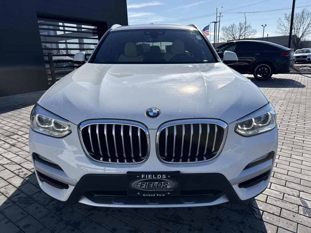 Alpine White 2018 BMW X3 xDrive30i AWD 8-Speed Automatic 2.0L I4 TwinPower Turbo 8-Speed Automatic, 12 Speakers, Active Blind Spot Detection, Active Driving Assistant, Advanced Real-Time Traffic Information, Air Conditioning, Alloy wheels, Ambiance Lighting, Apple CarPlay Compatibility, Auto-dimming door mirrors, Auto-dimming Rear-View mirror, Automatic temperature control, Bumpers: body-color, Comfort Access Keyless Entry, Convenience Package, Driver vanity mirror, Driving Assistance Package, Enhanced USB & Bluetooth, Fineline Cove Matte Finish Wood Trim, Front Bucket Seats, Front dual zone A/C, Hands-Free Bluetooth & USB Audio Connection, harman/kardon Surround Sound System, Head-Up Display, Heated door mirrors, Heated Front Seats, Heated Steering Wheel, Hi-Fi Sound System, In-Dash CD Player, Lane Departure Warning System, LED Headlights w/Cornering Lights, Lumbar Support, Navigation System, Overhead airbag, Panoramic Moonroof, Performance Control, Power door mirrors, Premium Package, Rear air conditioning, Rear anti-roll bar, Rear window defroster, Remote keyless entry, Remote Services, Roof rack: rails only, SiriusXM Satellite Radio, Spoiler, Steering wheel mounted audio controls, Turn signal indicator mirrors, Variable Sport Steering (DISC), Wheels: 19" x 7.5" (Style 692), WiFi Hotspot.