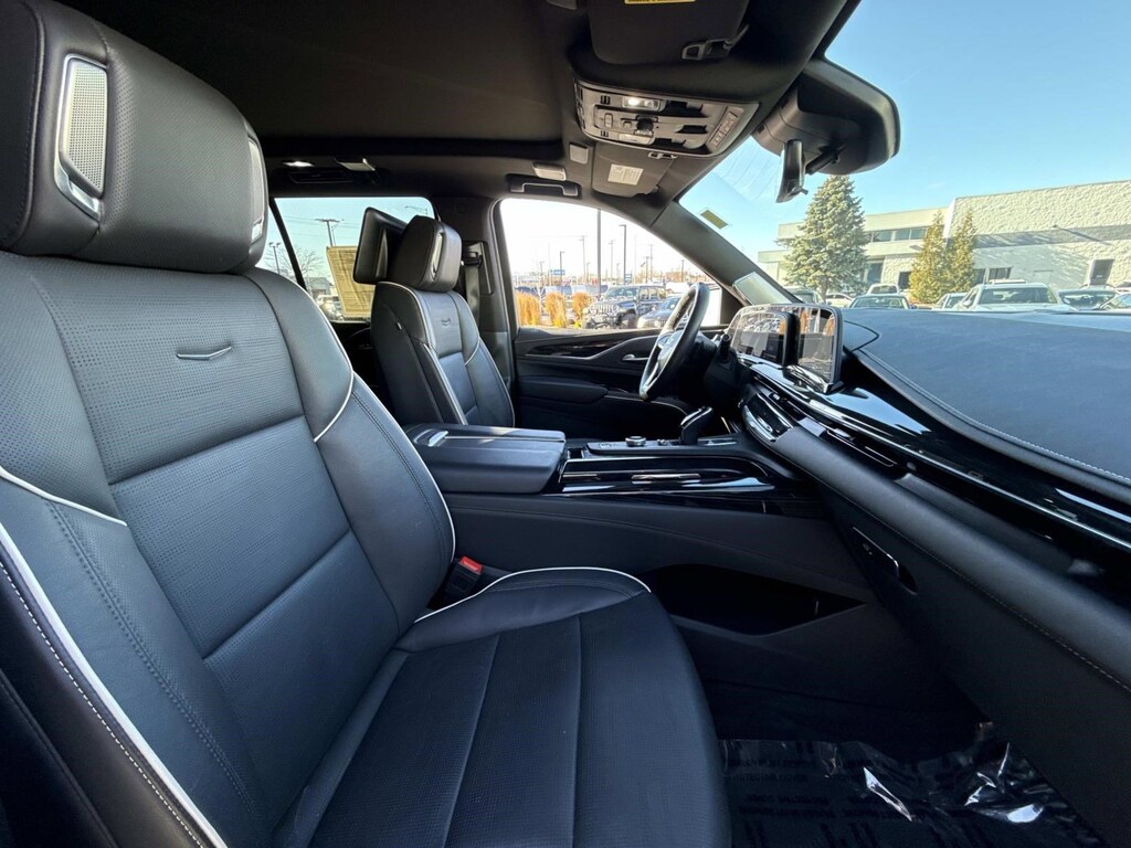 Black Raven 2023 Cadillac Escalade Sport AWD 10-Speed Automatic 6.2L V8 AWD, Jet Black w/Full Semi-Aniline Leather Seat Trim, 16.9" Diagonal OLED Infotainment Screen, 19 Speakers, 4-Way Power Driver Lumbar Seat Adjuster, 4-Wheel Disc Brakes, 8-Way Power Driver Seat Adjuster, Adaptive Cruise Control, Air Conditioning, Air Ride Adaptive Suspension, AKG Studio 19-Speaker Audio System, AKG Studio Reference 36-Speaker Audio System, All-Weather Floor Liner Package (LPO), All-Weather Integrated Cargo Liner (LPO), AM/FM radio: SiriusXM with 360L, Automatic Seat Belt Tightening, Automatic temperature control, Body-Color Door Handles, Door Lock & Latch Shields, Electronic Limited-Slip Differential, Enhanced Automatic Emergency Braking, Enhanced Automatic Parking Assist, Floor Liner Package (LPO), Front dual zone A/C, Glass Breakage Sensor, Gloss Black Escalade Nameplate (LPO), HD Radio, Heated & Ventilated Driver & Front Passenger Seats, Hitch Guidance w/Hitch View, Illuminating Front & Rear Sill Plates, Integrated Trailer Brake Controller, Monochrome Cadillac Emblems (LPO), Onyx Package (LPO), Power Liftgate, Power Panoramic Tilt-Sliding Sunroof, Preferred Equipment Group 1SC, Puddle Lamps w/Cadillac Crest (LPO), Radio data system, Radio: AM/FM w/Navigation, Rear air conditioning, Rear Camera Mirror, Rear Camera Mirror Washer, Rear Cross Traffic Alert, Rear Seat Entertainment System, Rear window defroster, Reconfigurable Full-Color Head-Up Display, Reverse Automatic Braking, Running Board Assist Steps, SiriusXM w/360L, Smart Trailer Integration Indicator, Soft Closing Front & Rear Doors, Teen Driver, Theft-Deterrent Alarm System, Touring Package, Trailer Side Blind Zone Alert, Vehicle Inclination Sensor, Vehicle Interior Movement Sensor, Wheels: 22" 12-Spoke Gloss Black Alloy (LPO), Wheels: 22" Interim (LPO), Wireless Apple CarPlay/Wireless Android Auto.