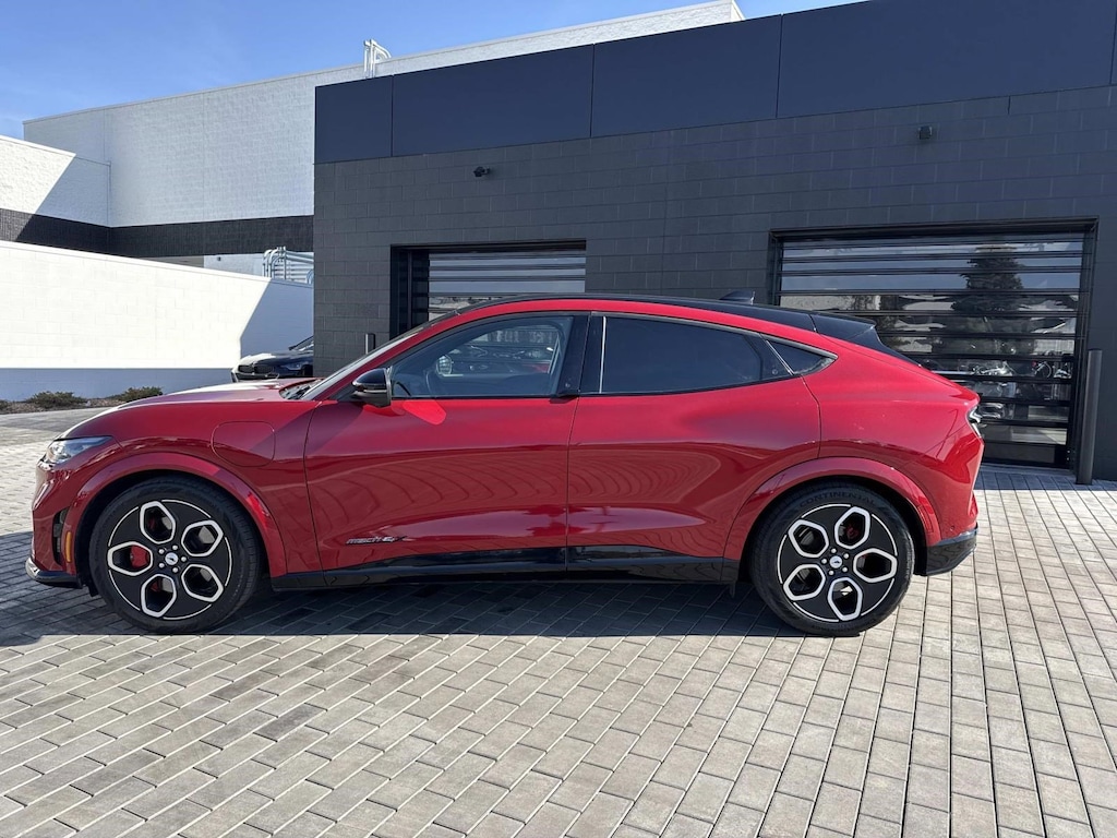 Rapid Red Metallic Tinted Clearcoat 2023 Ford Mustang Mach-E GT AWD Single-Speed Automatic Dual Electric Motor 10 Speakers, 1st & 2nd Row Floor Liners w/o Carpet Mats, 4-Wheel Disc Brakes, Alloy wheels, AM/FM radio: SiriusXM with 360L, Auto High-beam Headlights, Automatic temperature control, Brake assist, Bumpers: body-color, Cargo Floor Liner, Electronic Stability Control, Equipment Group 400A, Exterior Parking Camera Rear, Front anti-roll bar, Front Bucket Seats, Front Center Armrest, Front dual zone A/C, Front reading lights, Garage door transmitter, Heated ActiveX Sport Seats, Heated door mirrors, Heated front seats, Interior Protection Package (Pre-Installed), Knee airbag, Navigation system: Connected Navigation, Outside temperature display, Panic alarm, Passenger door bin, Passenger vanity mirror, Power door mirrors, Power driver seat, Power Liftgate, Power steering, Power windows, Rear seat center armrest, Rear side impact airbag, Remote keyless entry, Speed control, Spoiler, Traction control, Turn signal indicator mirrors, Wheels: 20" Machined-Face Aluminum.