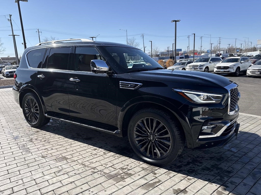 Mineral Black 2024 INFINITI QX80 Sensory 4WD 7-Speed Automatic 5.6L V8 17 Speakers, All-Season Floor Mats, All-Season Package, AM/FM radio: SiriusXM, Auto tilt-away steering wheel, Auto-dimming Rear-View mirror, Bumpers: body-color, Cargo Area Mat, Cargo Package, Console Net, First-Aid Kit, Heated door mirrors, INFINITI Radiant Illuminated Cargo Scuff Plates, Moisture-Resistant Rear Cargo Carpet, Navigation system: INFINITI InTouch Navigation, Nylon-Cord Cargo Net, Power Liftgate, Power moonroof, Premium Paint - Mineral Black, Radio data system, Radio: Bose Performance Audio System w/17 Speakers.