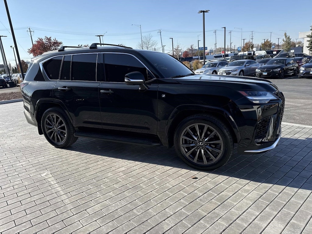 Black 2024 Lexus LX 600 F SPORT 4WD 10-Speed Automatic V6 Black w/Leather Seat Trim, 10 Speakers, Active Height Control (AHC), All Weather Cargo Mat, All Weather Floor Liner, All Weather Floor Liners w/Cargo Mat, Alloy Wheel Locks, AM/FM radio: SiriusXM, Auto-dimming door mirrors, Brake assist, Cargo Net, Dual front side impact airbags, Emergency communication system: Safety Connect (up to 10-year trial subscription included), F SPORT Package, Front anti-roll bar, Front wheel independent suspension, Illuminated Cargo Sill, Leather Key Gloves, Mark Levinson Surround Sound Audio, Panic alarm, Power Liftgate, Power moonroof, Quick Charge Cables-Mobile, Roof Rack Cross Bars, Security system, Speed control, Wheels: 22" Forged F SPORT.